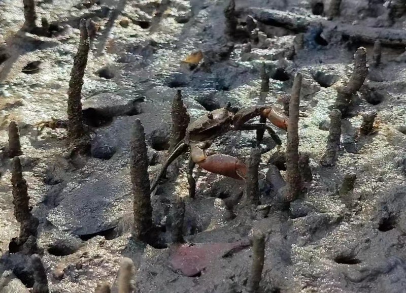 此次专访,杨明强还分享了一些关于红树林特色产业的情况。由于红树林带来的生物多样性。海角村村民会在潮退后前往红树林捡拾螃蟹、捕捉鱼虾、挖螺和沙虫等等,以此来补贴家用或增加营收。在当地,村民们与红树林是互相依靠、互相支撑,人与自然和谐共生的存在。