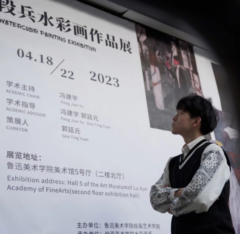 段兵的第一个个人作品展在2023年4月18日鲁迅美术学院美术馆开幕,这次展览得到高度重视,鲁迅美术学院绘画艺术学院院长、各系主任、教授、老师们前来观展,鲁迅美术学院绘画艺术学院院长:胡秉文教授;副院长:张志坚、牟达器教授;鲁迅美术学院;书记:姚朋远老师;工业设计院长:曹伟智院长;水彩画系主任:冯建宇教授;版画系主任:夏强教授;版画系副主任:梁锐教授;油画系主任:张贯一教授;实验艺术系主任:张丹教授;水彩系教授及策展人:郭廷元教授;鲁迅美术学院教授:张海君教授、董喜春教授;姜文斌教授等等……