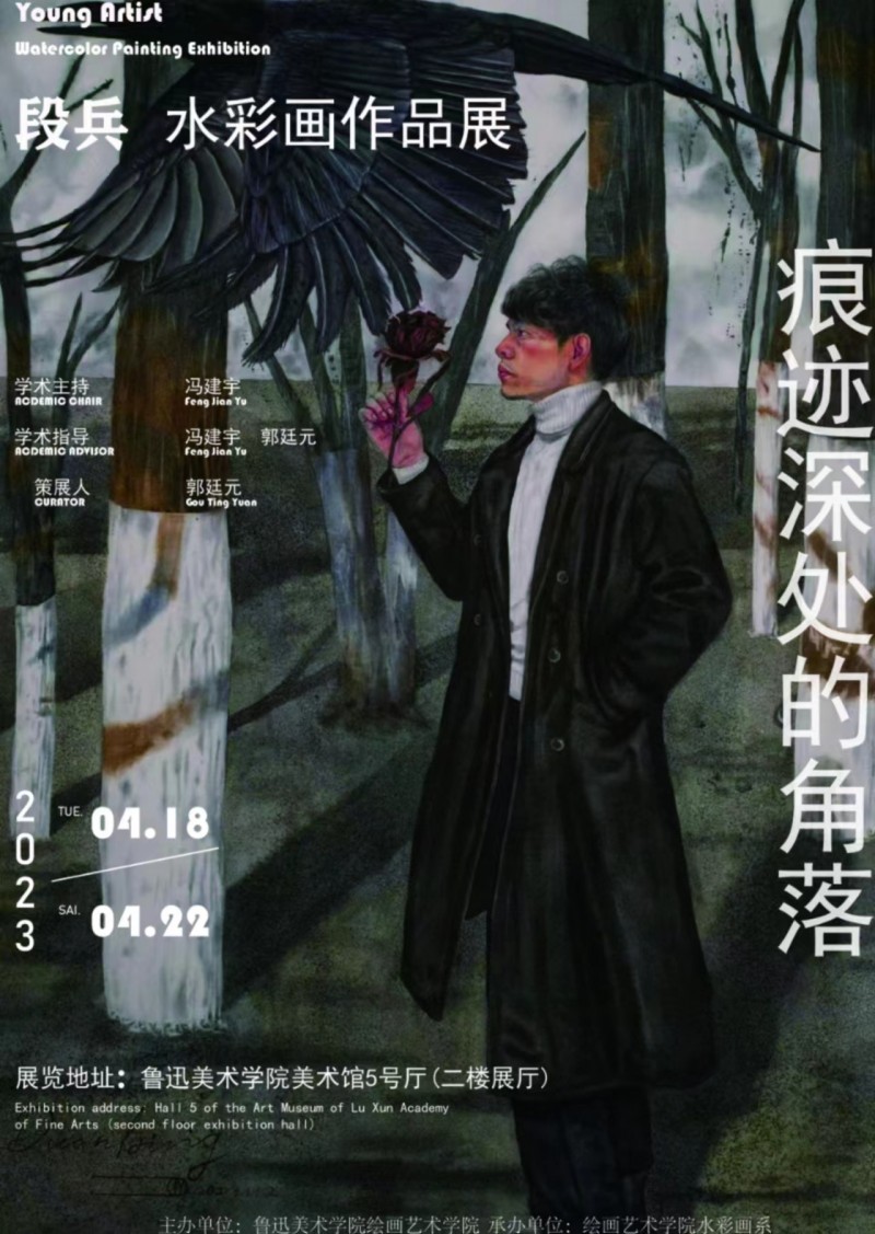 以“痕迹深处的角落”为题的2023年段兵水彩画个展在校举办引起轰动。段兵水彩画作品展学术主持:冯建宇,学术指导:冯建宇、郭廷元,策展人:郭廷元,主办单位:鲁迅美术学院绘画艺术学院。承办单位:绘画艺术学院水彩画系。展览时间:2023.04.18-04.22。展览地址:鲁迅美术学院美术馆5号厅(二楼展厅)。