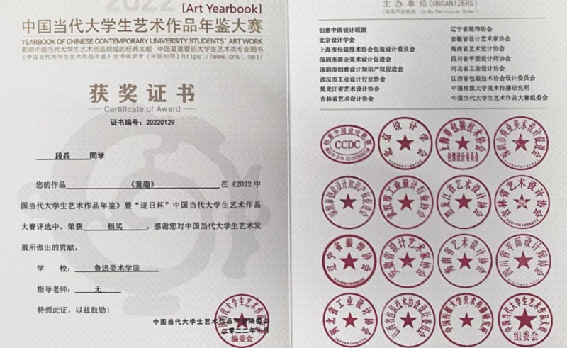 2022年间,其水彩作品《奉献者》参加庆祝20大胜利闭幕美术、书法、摄影作品展,油画作品《童趣》入学中国当代大学生艺术作品年鉴获银奖,油画作品《归途》入选中国大学生美术作品年鉴获银奖,全国仅有50人。丙烯作品《天使》获安徒生(国际)艺术奖金奖,丙烯作品《逆行者》获安徒生(国际)艺术奖银奖,丙烯作品《天使》在2022年“艺起战疫•共创美好”——沈阳青年艺术家抗疫主题美术作品网络展中获学术奖,在“春分溢彩•不负韶华”辽宁省青年画家作品展中,作品《奉献者》被评为学术奖。