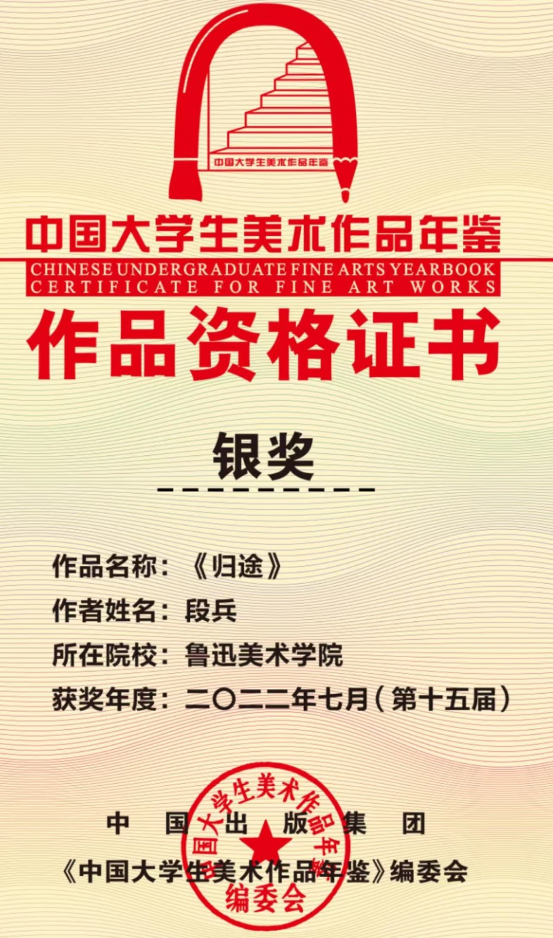 段兵接受记者专访自诉个展感受。 对于接触绘画的记忆停留在很小很小的时候,他常常拿起画笔在一些破破烂烂的纸张上图图画画,不知不觉这么多年过去了,他经常如饥似渴的全身心投入其中,忘记时间、忘记空间,忘记自我。有过徘徊、有过彷徨、有过纠结、有过成功后的喜悦。慢慢的有了自己的一套情感表达语言,有了自己独特的绘画思维与感觉。这种情感又总是无法用言语来表达,机智和美好的语言有时只不过是一种瞬时智慧淋漓的表达。但充满激情的绘画却是内心深处情感的炙热体现,他将现实生活中的那个我升华,分解与重组,在头脑中构成完整的艺术意象,并将其物化为艺术形象所采用的一种意象系统化的思维形式。变成那个独特世界里的“我”。他爱那个世界,爱它的真实,爱它的安静,爱的赤诚。在那个世界里“我”有挣扎、浮沉、纠结与狂欢。他异常渴望用画笔把那种情绪表现在他的画纸上,毕竟作品的每一寸地方都有他指间滑落过的痕迹。悄然逝去,留下的欢乐和笑靥就在记忆深处历久弥新。似乎什么都在变,他喜欢这种变化。他习惯性将这种变化表达在自己的作品中去,期望作品中的那个“我”在那一瞬间成为永恒。他将那炽热的情感隐含在画面中去,在心与心的传递中,展现内心深处痕迹里的角落,感受那份美好与赤诚。这些系列也会继续延续,愿在作品中与你相遇相知。他感恩鲁迅美术学院对自己的培养,让自己在本科期间迅速的成长,不仅在专业方面让自己取得了巨大的进步,在心智方面也让自己日益成熟,他怀着一颗无比感恩的心对鲁美表达出最真挚的感谢。本科期间鲁美教师对他照顾有加,得到了重点的关注与培养。段兵是这样说的,我取得的一切成绩都是老师辛勤付出的成果,正是因为有他们,我才变成了更好的自己!感恩每一位老师,愿将来的自己可以成为他们的骄傲!据了解,段兵在校期间30幅作品被鲁迅美术学院永久收藏。