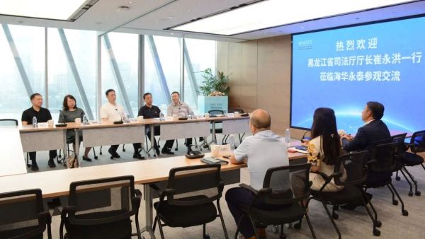 9月4日下午,黑龙江省司法厅厅长崔永洪、副厅长刘勇、公共法律服务管理二处处长夏彬彬、公法一处处长魏志学,在上海政法学院党委副书记、纪委书记潘牧天陪同下到海华永泰上海总部进行工作指导并参观考察。海华永泰律师事务所主任、党委书记马靖云,海华学院院长、管委会委员余盛兴以及管委会委员张洪波热情接待并参加座谈交流。
