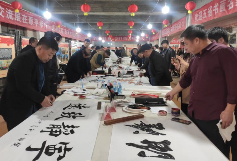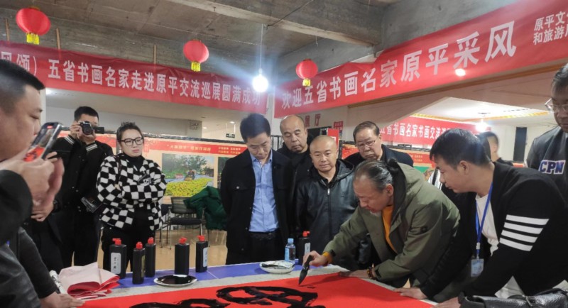 晋北展风彩,经冬犹墨香。中国书法家协会会员,中国美术家协会会员刘墉;中国书法家协会会员刘晓波;中国书法研究院高级书法师鲜治江;齐白石再传弟子张双月;中国书画协会理事林玉贵;陕西省美术家协会会员刘龙、韩增军;中国五台山书画艺术研究院副院长朱宏杰、于福东;一级书法师季大卯;中国当代诗书画家协会会员张春旺;山西省美术家协会会员冯良书;忻州美术家协会理事苏泉;原平市美术家协会常务副主席、原平画院院长郭建杨;原平市书法家协会会员王福岁、张正山、王玉伍等人现场书画,各有千秋,别具特色,引人入胜,有力地彰显了传统文化的独特魅力,凸显了文化惠民功能,提高了当地广大群众的审美情趣,增强了文化自信,推动了原平书画事业的繁荣与发展,让更多人了解和喜爱书画。
